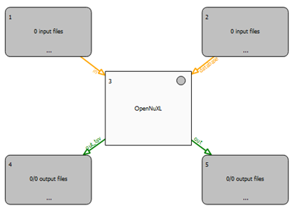 A workflow must include at least two input nodes. To connect these input nodes to the OpenNuXL node: